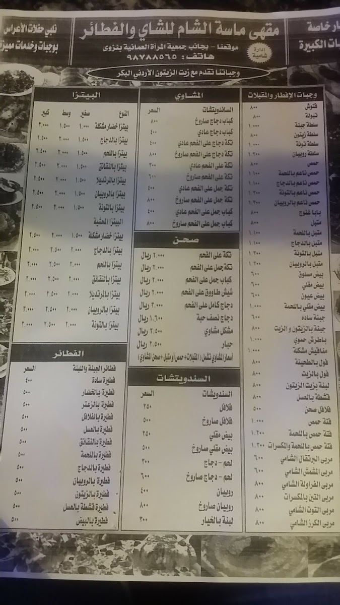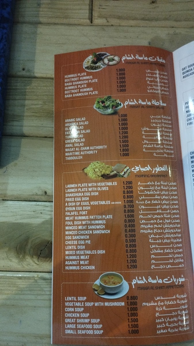Each dish on the menu showcases the rich culinary traditions of the region, offering both familiar flavors and exciting new twists. Whether you're in the mood for something light or a hearty meal, Masat Al Sham's menu has something to satisfy every craving.